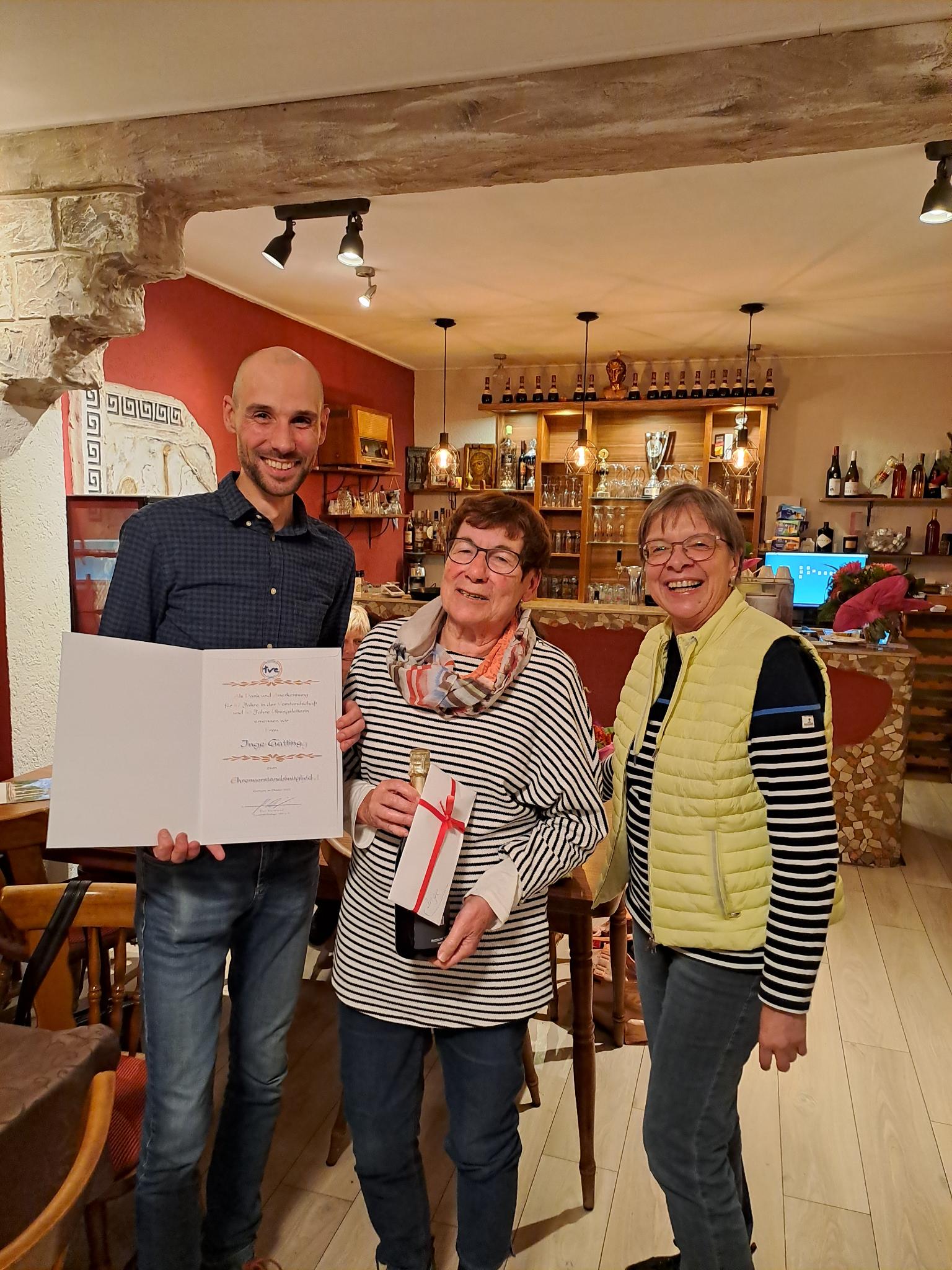 Inge Gatting verabschiedet sich nach 47 Jahren aus der Vorstandsschaft. Sie wird uns fehlen und wird zum Ehrenvorstandsmitglied ernannt.