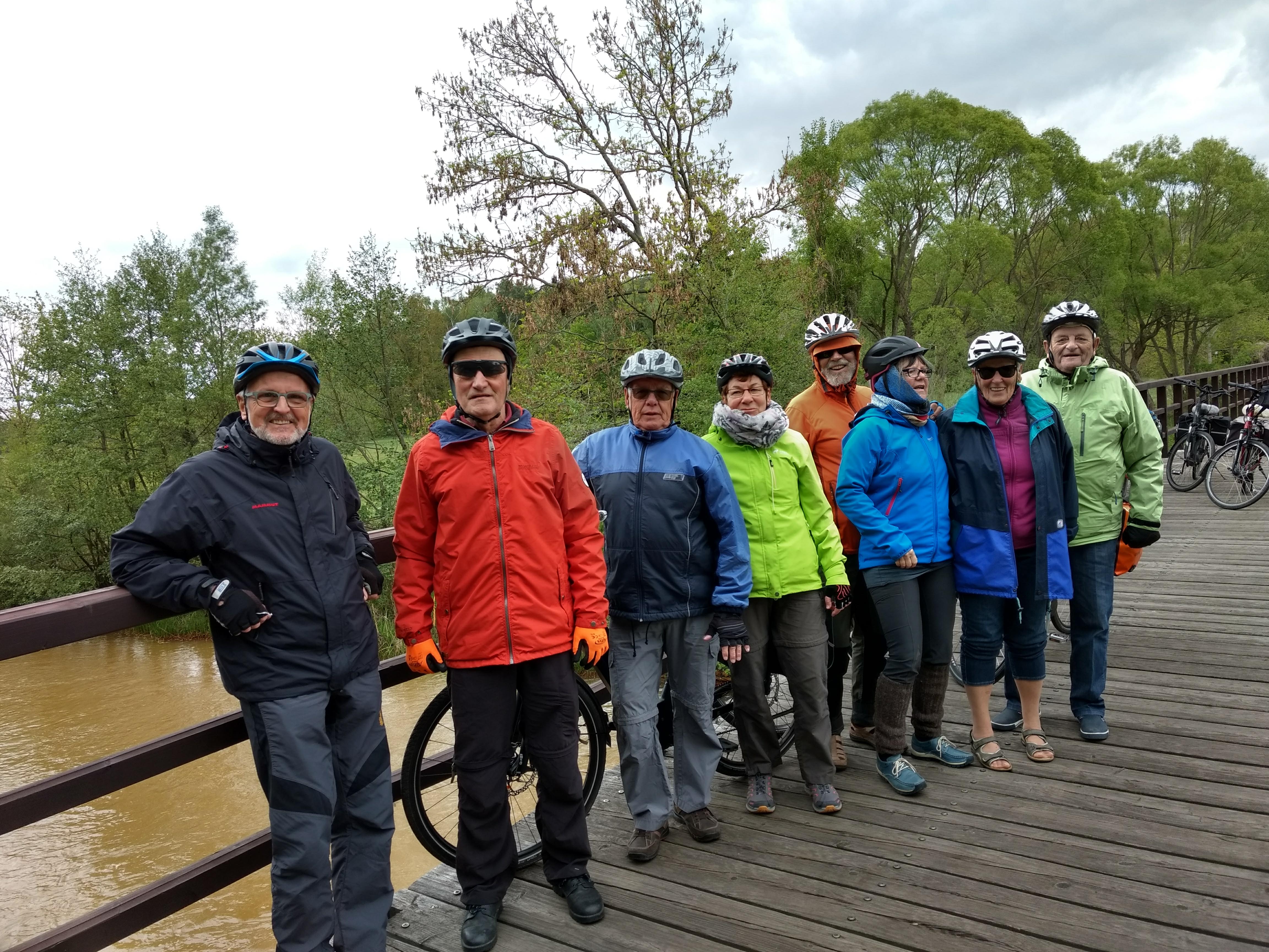 Am vergangenen Montag machten sich sieben abenteuerlustige Vereinsmitglieder auf den Weg, um in 4 Tagen die Strecke Saverne im Elsass bis nach Trier abzustrampeln. Bei fast idealem Radelwetter ging es zunächst am Rhein-Marne-Kanal entlang bis zu den lothringschen Weihern. Nach einer abenteuerlichen Brückenüberquerung war Mittersheim das erste Ziel der Mühe. Ein exquisites Drei-Gänge-Menü entlohnte für die Strapazen der ersten 78 Km-Etappe. Am zweiten Tag führte der Weg entlang des Canal des Houllières und schließlich der Saar, vorbei an romantischen Schleusen und verträumten Naturlandschaften über Sarreguemines bis nach Saarbrücken. „Hauptsach gut gess“ hieß es denn am Abend und bei saarländischen Spezialitäten ließ die Gruppe den Tag ausklingen.